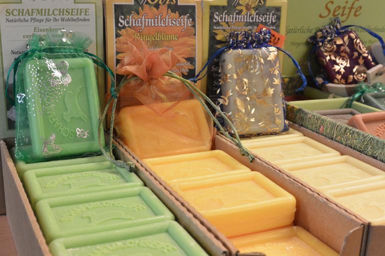 Schafmilchseifen haben den Vorteil, dass sie Rückfettend wirken und somit die Haut nicht austrocknen, wie es bei Seifen sonst der Fall ist. Unsere altbewährten Schafmilchseifen gibt es in den Düften Wildrose, Eisenkraut, Ringelblume und Lavendel. In diese 4 Sorten sind Almkräuter eingebunden. Sonstige Sorten: Mango, Arnika, Wiesenduft, Blutorange, Granatapfel, Zimt, Lindenblüte, For Men (Rasierwasserduft), Sanddorn, Aprikose und Ingwer.