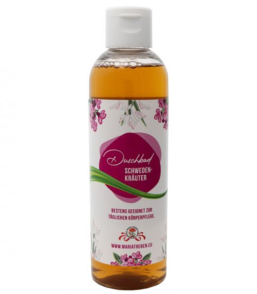 Dieses Duschbad besitzt alle Vorzüge der Schwedenkräuter, mit einer angenehmen Duftnote und wertvollen hautpflegenden Ölen ausgestattet.