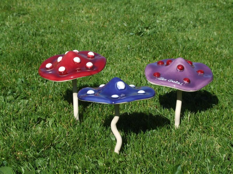 Keramikpilz mit Keramikstiel in verschiedenen Farben aus EU-Handarbeit - deshalb sieht kein Pilz aus wie der andere (alles Unikate)