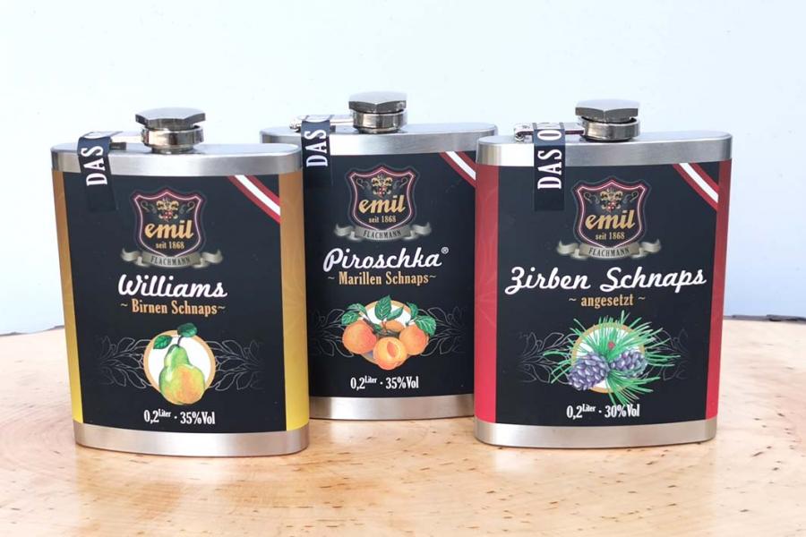 Das Traditionsprodukt aus Österreich. Zirbenschnaps angesetzt. Im Flachmann auch mit auf Reisen.
